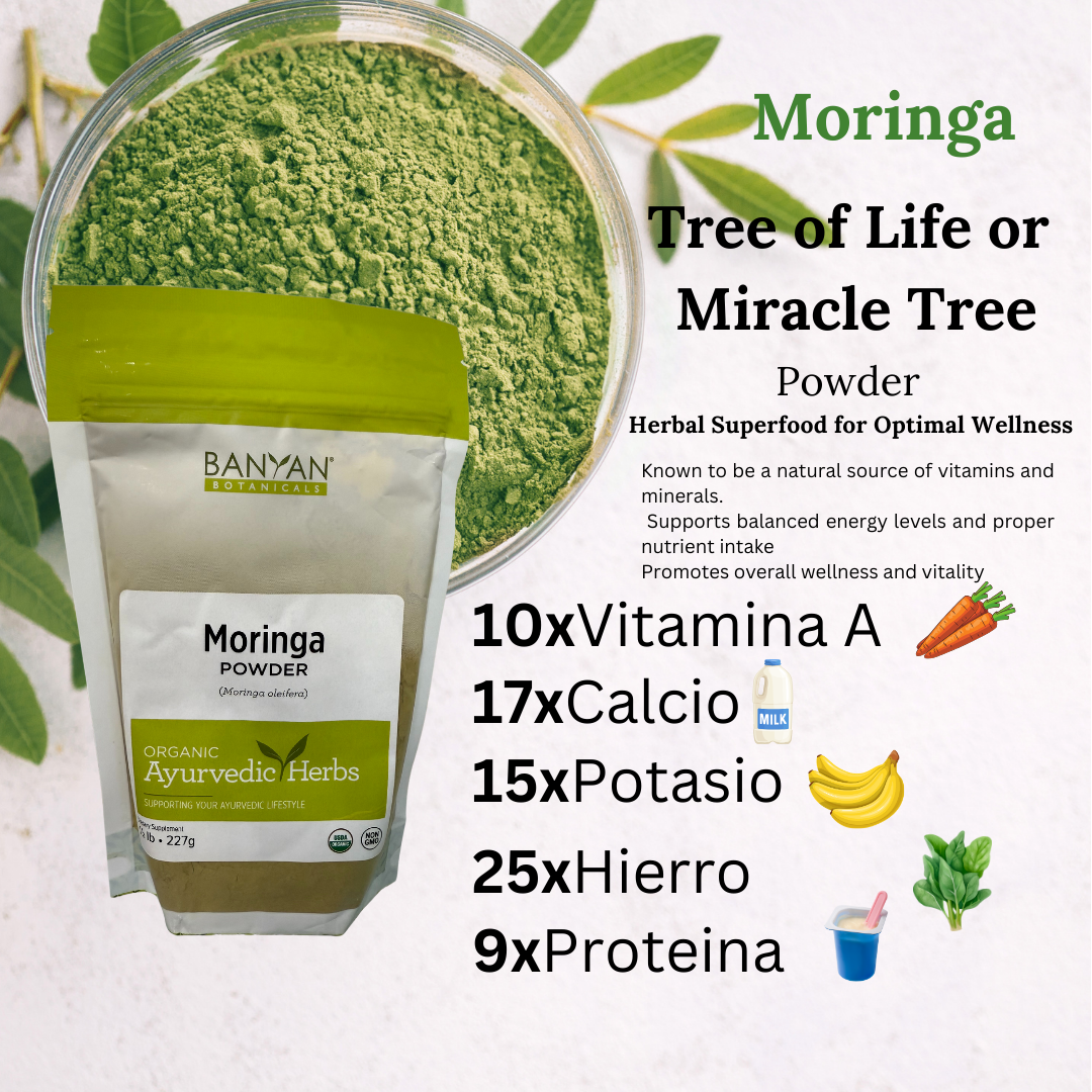 Moringa, also known as the Tree of Life or Miracle Tree, is a Herbal Superfood for Optimal Wellness. It is a natural source of vitamins and minerals, supports balanced energy levels and proper nutrient intake, and promotes overall wellness and vitality.