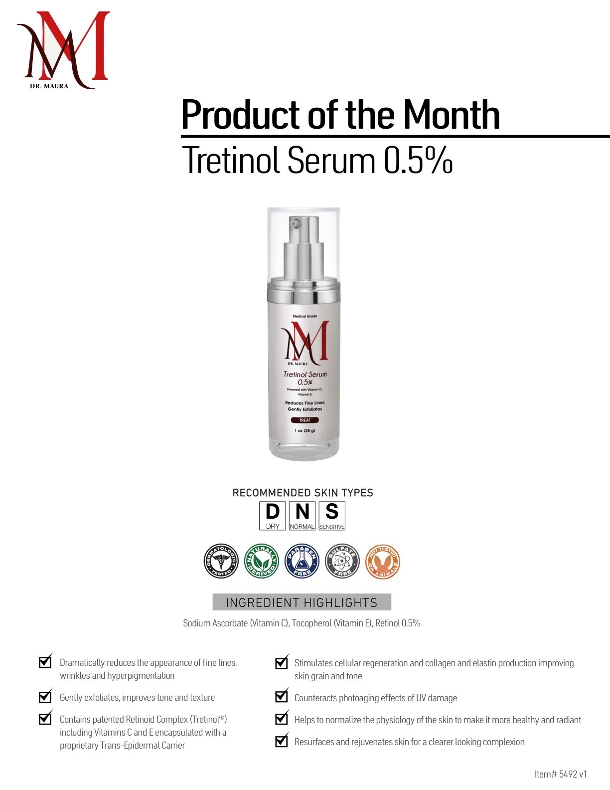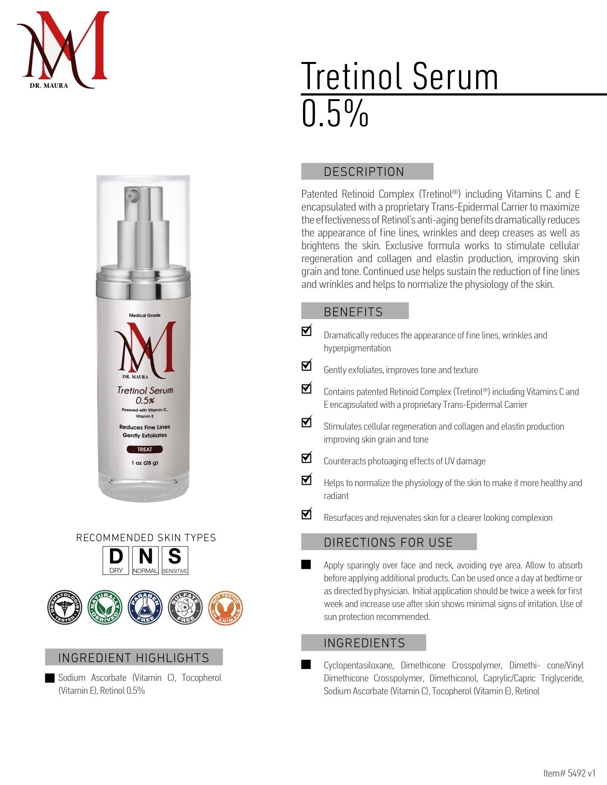 Patented Retinoid Complex (Tretino|®) including Vitamins C and E encapsulated with a proprietary Trans-Epidermal Carrier to maximize the effectiveness of Retinols anti-aging benefits dramatically reduces the appearance of fine lines, wrinkles and deep creases as well as brightens the skin. Exclusive formula works to stimulate cellular regeneration and collagen and elastin production, improving skin grain and tone. Continued use helps sustain the reduction of fine lines and wrinkles and helps to normalize the physiology of the skin.